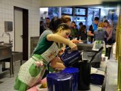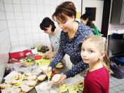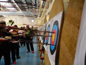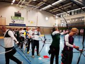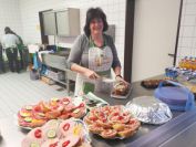 Nachdem die ersten 60 Pfeile des ersten Wettkampfteils geschossen waren, folgte am Nachmittag die zweite Startgruppe, bei der ebenfalle sieben Döbelner Bogner an den Start traten. Doch zuvor war wieder das Orga-Team des Vereins gefragt. Alle Scheibenauflagen der 30 Scheiben wurden gewechselt und mit neuen Auflagen bestückt. In der Mensa wurde das Mittagsangebot sehr gut genutzt. Das Küchenteam kam dabei ganz schön ins Schwitzen. In kürzester Zeit beköstigten sie viele hungrige Schützen mit Wienern, Bouletten und Kartoffelsalat, belegten Brötchen und den leckeren sowie von den Vereinsmitgliedern selbstgebackenen Kuchen.