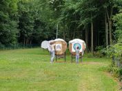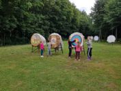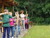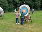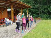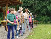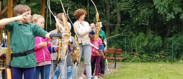 In den Ferien probierten die Hortkinder aus Zschaitz und Waldheim das Bogenschießen auf unserer Schillerhöhe. Unter fachlicher Anleitung von Carola und Anne erlernten die über 80 Kinder, die in Gruppen an mehreren Tagen verteilt waren, den Umgang mit Pfeil und Bogen. Die Kinder zielten dabei auf traditionelle Scheiben, schossen auf Luftballons oder versuchten das "Tierbild" auf der Auflage zu treffen. Wir hoffen, dass es den Kids sowie den Erziehern bei uns gefallen hat. Ein Dank auch an Carola und Anne, die dafür ihre Arbeitszeit "verlegt" haben ;-)