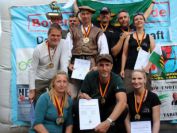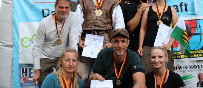 Die diesjährigen Deutschen Meisterschaften im 3D-Bogensportbereich zogen die Topschützen Deutschlands in die niedersächsische Stadt Hohengeiß. Mit von der Partie war Frank Eggert von den Döbelner Bogenschützen 72 e.V. Schon seit mehreren Jahren hat Frank diese Art des Bogensports für sich entdeckt und streift wie Robin Hood durch „Wald und Flur“. Die Meisterschaften teilten sich in eine Wald- und eine Hunterrunde auf zwei Tage auf, bei denen in vier Kategorien verschiedene Hindernisse und Schwierigkeitsgrade zu absolvieren waren. Die Entfernungen sind dabei von 50 bis 30 Meter zum Teil bekannt oder auch durch den Schützen instinktiv abzuschätzen. Der Parcours führte die Schützen durch einen Wald, steile Hanglagen oder Wiesen, bei denen sie liegend, kniend oder mit der Hüfte abgewinkelt das Ziel zu treffen hatten. Zudem spielten noch Wind und die unterschiedlichen Lichtverhältnisse eine Rolle, die den Schuss ebenfalls beeinflussen. Frank Eggert war von der Organisation und dem 3d-Tierparcours regelrecht begeistert und hatte viel Spaß an der Meisterschaft. Kniffelig gestalteten sich Kills wie liegende Gänse oder eine 3D-Wildkatze, die es im Schatten neben einem Baumstumpf bergabwärts zu treffen galt. Souverän setzte sich der Döbelner gegen seine Konkurrenten durch und war am zweiten Wettkampftag einer der besten seiner Altersklasse. Mit 564 Treffern gewann er sich schließlich die Bronzemedaille in der Altersklasse Ü45 Jagdbogen. Neben der Einzelwertung gibt es im 3D-Bogensport auch eine Mannschaftswertung, bei der die besten zehn Bogenschützen aus jedem teilnehmenden Bundesland zusammengewertet werden. Gold ging dabei an das Team aus Sachsen, zu denen auch Frank Eggert mit seinem Erfolg einen essentiellen Beitrag leistete. Wir sagen Herzlichen Glückwünsch!