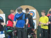 Samstagmorgen gingen für die Döbelner als erste Starter Carola Heinze und Frank Eggert in den Klassen Damen Ü50 Jagdbogen und Herren Ü45 Jagdbogen in das Rennen ums Edelmetall. Während Frank seinen neunten Platz nach der ersten Runde mit 240 Ringen und nochmaligen 235 Ringen in der zweiten Runde konstant verteidigte, musste Carola einen kleinen Rückschlag hinnehmen. Sie rangierte mit 215 Ringen zunächst auf Platz 3, konnte diesen aber mit weiteren 199 Ringen leider nicht halten, sodass sie am Ende mit insgesamt 414 Ringen auf Platz 5 landete. Am Morgen noch als Vereinsvorsitzender die Begrüßungsrede gehalten, trat auch Thomas Eichhorn persönlich dann am Nachmittag in der Kategorie Herren Ü55 Blankbogen an die Schützenlinie. Mit einem Gesamtergebnis von 430 Ringen belegte er ebenfalls einen neunten Platz.