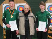 Mit dem Eintritt ins Wettkampfgeschehen der beiden talentierten Nachwuchsschützen Tim Krawczyk und Tobias Jähnichen in den dritten Durchgang am Sonntagvormittag konnte nun die erste Medaille nach Hause geholt werden. In der Altersklasse U17-männlich Recurve dominierte Tim bereits in der ersten Hälfte mit 274 Ringen vor seinen Kontrahenten auf dem ersten Rang. In Runde 2 konnte er sich auf weitere 278 Ringe steigern, sodass er schließlich mit einem Gesamtergebnis von 552 Ringen und damit persönlicher Bestleistung die heißbegehrte Goldmedaille entgegennehmen konnte. Sein Vereinskamerad Tobias wurde mit einem guten Gesamtergebnis von 526 Ringen Sechster.
