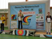 Mit dem Eintritt ins Wettkampfgeschehen der beiden talentierten Nachwuchsschützen Tim Krawczyk und Tobias Jähnichen in den dritten Durchgang am Sonntagvormittag konnte nun die erste Medaille nach Hause geholt werden. In der Altersklasse U17-männlich Recurve dominierte Tim bereits in der ersten Hälfte mit 274 Ringen vor seinen Kontrahenten auf dem ersten Rang. In Runde 2 konnte er sich auf weitere 278 Ringe steigern, sodass er schließlich mit einem Gesamtergebnis von 552 Ringen und damit persönlicher Bestleistung die heißbegehrte Goldmedaille entgegennehmen konnte. Sein Vereinskamerad Tobias wurde mit einem guten Gesamtergebnis von 526 Ringen Sechster.