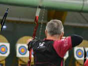 Samstagmorgen gingen für die Döbelner als erste Starter Carola Heinze und Frank Eggert in den Klassen Damen Ü50 Jagdbogen und Herren Ü45 Jagdbogen in das Rennen ums Edelmetall. Während Frank seinen neunten Platz nach der ersten Runde mit 240 Ringen und nochmaligen 235 Ringen in der zweiten Runde konstant verteidigte, musste Carola einen kleinen Rückschlag hinnehmen. Sie rangierte mit 215 Ringen zunächst auf Platz 3, konnte diesen aber mit weiteren 199 Ringen leider nicht halten, sodass sie am Ende mit insgesamt 414 Ringen auf Platz 5 landete. Am Morgen noch als Vereinsvorsitzender die Begrüßungsrede gehalten, trat auch Thomas Eichhorn persönlich dann am Nachmittag in der Kategorie Herren Ü55 Blankbogen an die Schützenlinie. Mit einem Gesamtergebnis von 430 Ringen belegte er ebenfalls einen neunten Platz.