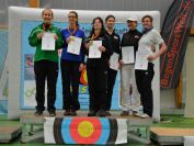 Am Nachmittag durften dann die Damen und die „etwas älteren Damen“ zeigen, was sie können. In der Altersklasse Damen Recurve gingen die beiden Döbelnerinnen Anne Eichhorn und Yvette Gieseke an den Start. Für beide verlief der Wettkampf nicht ganz so wie erhofft und mussten die vorderen Platzierungen abgeben. Mit einem Gesamtergebnis von 518 Ringen wurde Yvette Achte und Anne landete mit 504 Ringen auf Platz 11. Bei Silke Bertram, die in der Altersklasse Damen Ü40 Recurve teilnahm, lief es von Anfang an sehr gut, sodass sie mit 271 Ringen nach der ersten Runde und weiteren 266 Ringen ihren zweiten Platz für sich behaupten und eine weitere Medaille für die Döbelner erringen konnte. Auch Carola Heinze war am Sonntagnachmittag wieder mit von der Partie und ging in der Altersklasse Damen Ü50 Recurve an den Start. Mit jeweils 249 Ringen und einem Gesamtergebnis von 498 Ringen wurde sie Neunte.