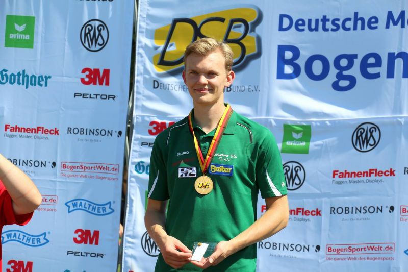 In Leons Altersklasse Junioren Compound tummelten sich insgesamt nur neun Teilnehmer, was aber den Konkurrenzdruck nicht einfacher machte. Nach der ersten Runde auf 50 Meter lag Leon mit seinem direkten Verfolger Yannik Schütz vom BoSC Erftstadt ringgleich mit 339 Ringen auf Rang 1. Beim zweiten Schießen auf gleicher Entfernung ging es weiterhin sehr eng zu. Nur ein Ring entschied am Ende über Silber oder Gold. Mit weiteren 344 Ringen war es letztendlich Leon, der vor Yannik Schütz, der zusätzliche 343 Ringe schoss, die Goldmedaille gewann. Jeremy Achenbach vom TV Weidenhausen lag als Drittplatzierter insgesamt nur fünf Ringe zurück.