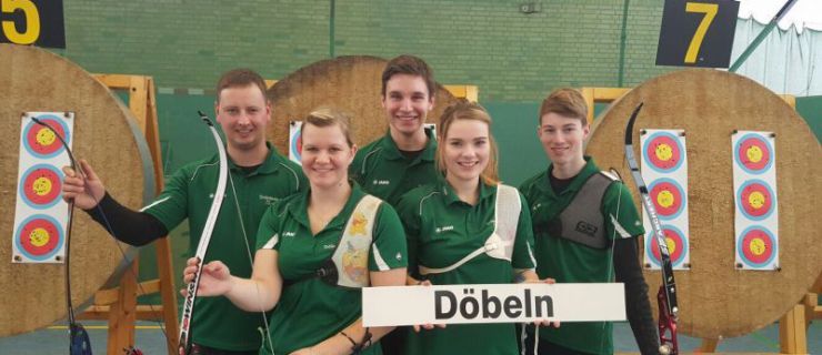 Die Recurveklassen kämpften ebenfalls um den Mannschaftgewinner aus Sachsen, jedoch am anderen Ende von Sachsen in Leipzig. Das Team bestehend aus Anne Eichhorn, Yvette Gieseke, Tobias Jähnichen, Tim Krawczyk und Christoph Windler kämpfte sich souverän von den 7. Platz auf den dritten Podestplatz. Im ersten Match hatten die Döbelner leichte Anfangsschwierigkeiten und verloren mit 3:7 Punkten gegen die Gegnermannschaft aus Aue. Doch von dieser Niederlage ließ sich das junge Team nicht entmutigen. Im zweiten Match erkämpften sich die Döbelner Schützen klar mit einem 6:0 die verdienten 2 Matchpunkte gegen Leipzig. Auch gegen die Mannschaften aus Görlitz und Werdau zeigten die Schützen aus Döbeln ihren Teamgeist und holten sich jeweils zwei Matchpunkte. Mit drei von vier gewonnenen Matches rutschten die Döbelner von einem 7. Platz aus der Vorrunde nun auf den dritten Platz der Landesliga-Rangliste. Nach der Halbzeit hieß es an die bestehenden Leistungen weiter anzuknüpfen und den Platz zu halten. Im fünften Match ergab sich gegen die Mannschaft aus Plauen ein spannendes und nervenaufreibendes Kopf-an-Kopf-Rennen. Schließlich konnte das Match mit einem 1:1 Unentschieden für beide Teams beendet werden. Im vorletzten Match waren ebenfalls die Nerven der Döbelner gefragt. Die Mannschaft aus Radeberg legte 2 Satzpunkte vor. Doch davon ließen sich die Döbelner nicht verunsichern und glichen das Match mit zwei Satzpunkten aus(2:2). In der nächsten Runde schossen die Radeberger Schützen einen Ring mehr, sodass der Gegner wieder zwei Satzpunkte bekam (4:2). Die vierte Runde entschieden die Döbelner für sich (4:4). In der alles entscheidenden Satzrunde setzen die Döbelner ihre Leistungen souverän um und erkämpften sich gegen die Mannschaft aus Radeberg den Matchsieg(6:4). Auch das letzte Match gegen das Team aus Dresden gewannen die Döbelner Schützen mit einem 6:4. Nach dem zweiten Spieltag sieht die Bilanz wie folgt aus: fünf gewonnene Matche, ein Unentschieden und eine Niederlage. Die Schützen aus der Stiefelstadt können sehr stolz auf dieses Ergebnis sein, da sie sich von einem siebten Platz auf den dritten Rang der Landesliga Recurve gekämpft haben.
