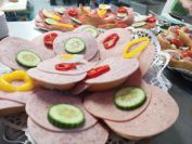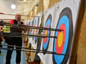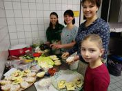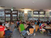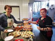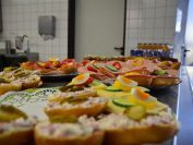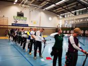 Nachdem die ersten 60 Pfeile des ersten Wettkampfteils geschossen waren, folgte am Nachmittag die zweite Startgruppe, bei der ebenfalle sieben Döbelner Bogner an den Start traten. Doch zuvor war wieder das Orga-Team des Vereins gefragt. Alle Scheibenauflagen der 30 Scheiben wurden gewechselt und mit neuen Auflagen bestückt. In der Mensa wurde das Mittagsangebot sehr gut genutzt. Das Küchenteam kam dabei ganz schön ins Schwitzen. In kürzester Zeit beköstigten sie viele hungrige Schützen mit Wienern, Bouletten und Kartoffelsalat, belegten Brötchen und den leckeren sowie von den Vereinsmitgliedern selbstgebackenen Kuchen.